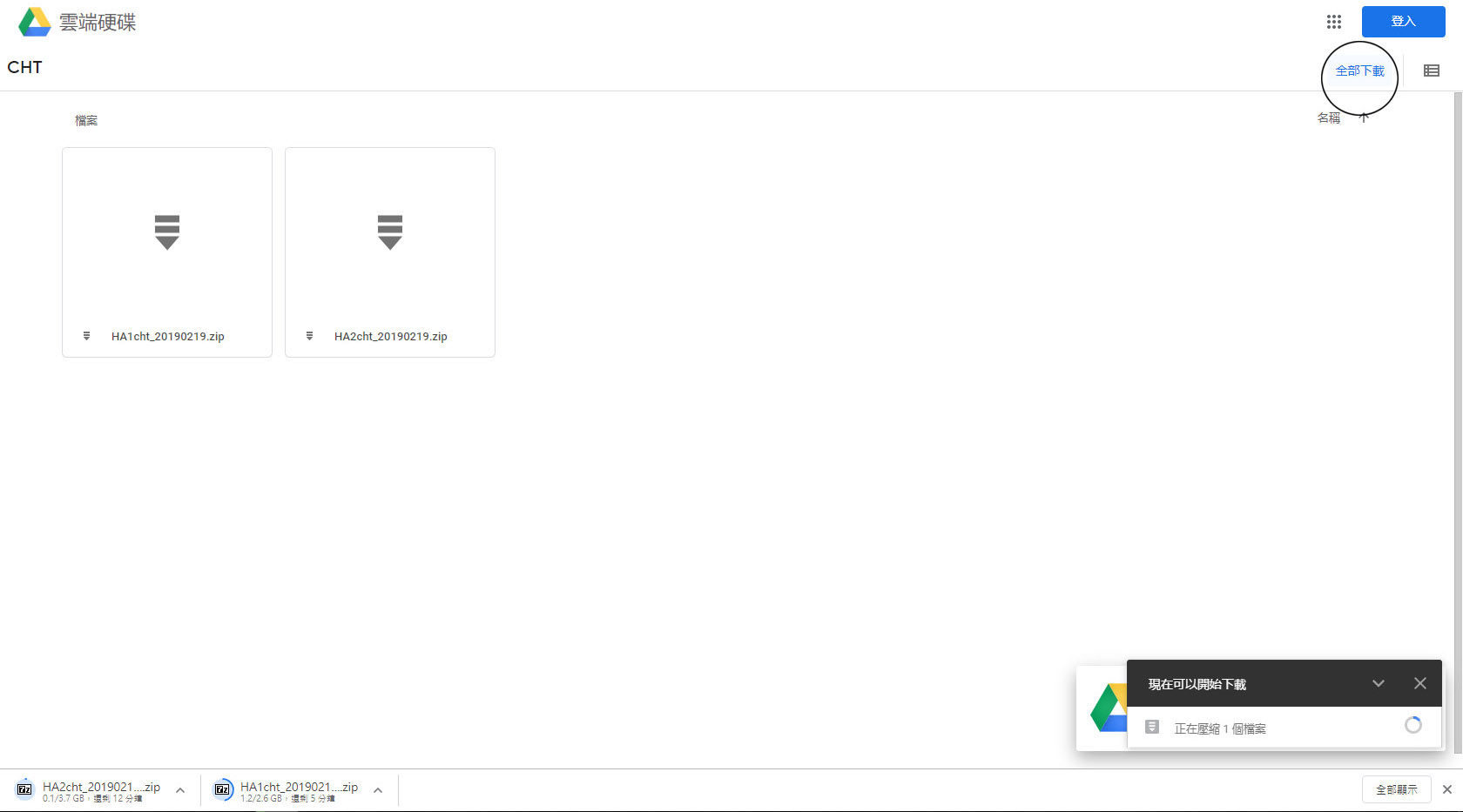 2.點(diǎn)取全部下載,等他解壓縮跑完就可以下載了