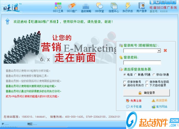 旺道SEO優(yōu)化軟件是由旺道SEO推出的一款專業(yè)的SEO優(yōu)化軟件。旨在幫助用戶將網(wǎng)站排名在百度的第一頁(yè),增加品牌及產(chǎn)品的展示率,從而提升產(chǎn)品的推廣力度,增加意向顧客量。該系統(tǒng)以百度優(yōu)化排名為主,同時(shí)提升在谷歌、有道、搜搜、搜狗、Bing、Yahoo等多個(gè)搜索引擎的權(quán)重,提升網(wǎng)站的在意向顧客前的展示率,從而提高產(chǎn)品的推廣效果。旺道SEO優(yōu)化軟件不斷突破傳統(tǒng)的理論框架,根據(jù)WhiteHat優(yōu)化技巧,通過(guò)BlueHat優(yōu)化的運(yùn)作模式,精益求精,緊跟搜索引擎SE的運(yùn)作,云智能優(yōu)化引擎,深度發(fā)掘百度關(guān)鍵詞活躍度及百度指數(shù),SEO提升網(wǎng)站的SEO質(zhì)量達(dá)70~80%,能同時(shí)對(duì)多個(gè)知名搜索引擎產(chǎn)生優(yōu)化效果,幫助用戶得到更好的排名效果,讓你的網(wǎng)站排名在度第一頁(yè)。