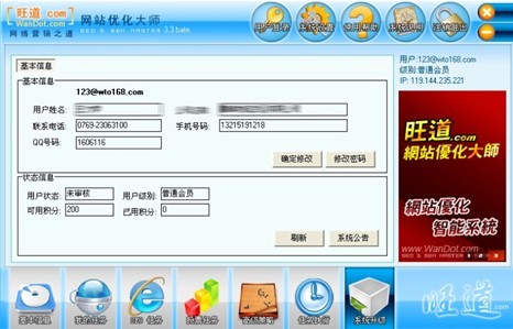 旺道seo軟件怎么使用?登錄后可以進(jìn)入會(huì)員平臺(tái)修改個(gè)人資料。如下圖。