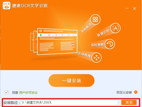4.軟件默認(rèn)安裝在C:\Program Files (x86)\JSOCR,建議選擇自定義安裝
