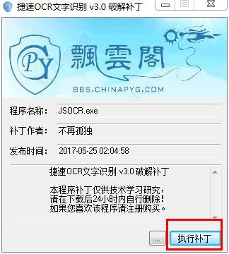 2、我們現(xiàn)在下載“捷速OCR文字識別 v3.0 破解補(bǔ)丁.exe”補(bǔ)丁,打開破解補(bǔ)丁后,點擊“執(zhí)行補(bǔ)丁”。