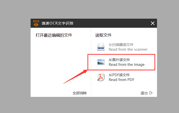 第二步,運行捷速OCR文字識別軟件,從界面可以看見,這款軟件不僅可以識別圖片,連PDF文件也是可以識別的。我們點擊“從圖片讀文件”將需要進(jìn)行識別的圖片打開。