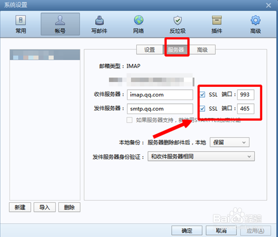 客戶端賬號(hào)類型有POP 和IMAP類型,除此之外端口號(hào)還有SSL端口類型