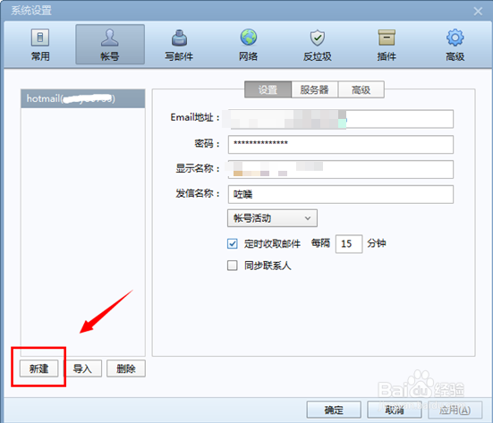 同樣在賬號(hào)設(shè)置的選項(xiàng)卡中,點(diǎn)擊選擇”新建‘功能來(lái)新建添加賬號(hào)