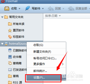 如果是foxmail之前已經(jīng)有賬號(hào),可以通過(guò)選擇賬號(hào)文件夾。右鍵選擇”設(shè)置“