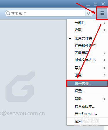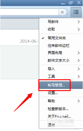 對(duì)于安裝好的foxmail默認(rèn)是沒有賬號(hào)的,可以通過(guò)點(diǎn)擊右上角選項(xiàng)--- 賬號(hào)管理如下圖