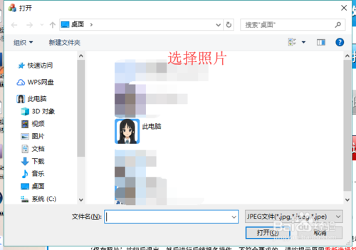 點擊后會彈出一個選擇照片的窗口,在里面查找選擇要處理的圖片。