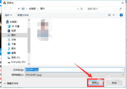 會打開保存照片的窗口,在里面選擇保存的位置,點擊下面的保存。