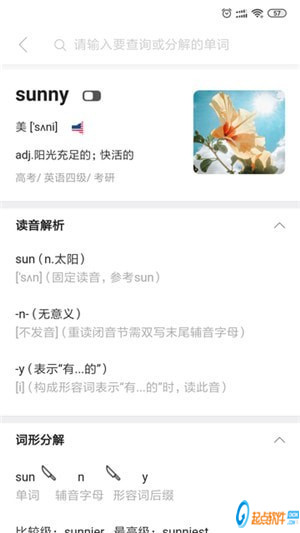 2.會(huì)結(jié)合英語單詞的音形義,發(fā)散性記憶英語詞匯,讓大家在學(xué)習(xí)英語的過程中,徹底擺脫靠死記硬背記憶單詞的學(xué)習(xí)方式,英語解詞讓大家輕松、有趣地學(xué)好英語。