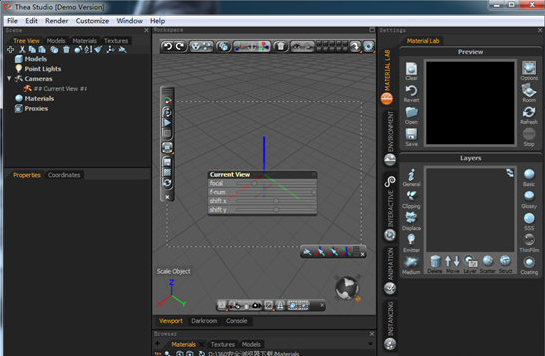 Thea forsketchup允許用戶導(dǎo)出場景到Thea暗室,以便使用更高級的工具進(jìn)行編輯。使用64位的暗室,用戶可以渲染非常大的場景、非常高分辨率的圖象,而不用受到內(nèi)存限制。