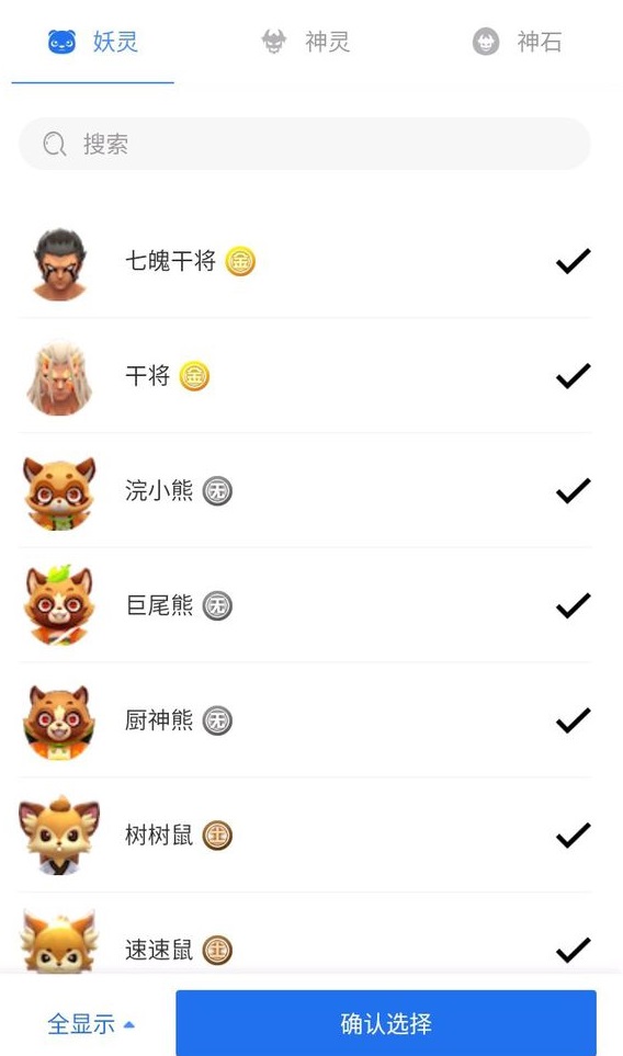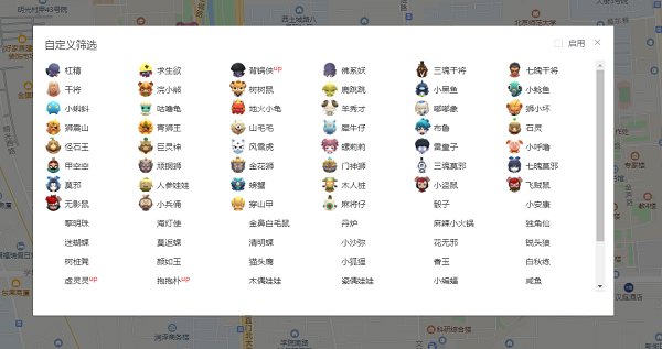 首先在左下角點一次全隱藏,然后在列表中勾選想抓的妖怪,如小狐貍
