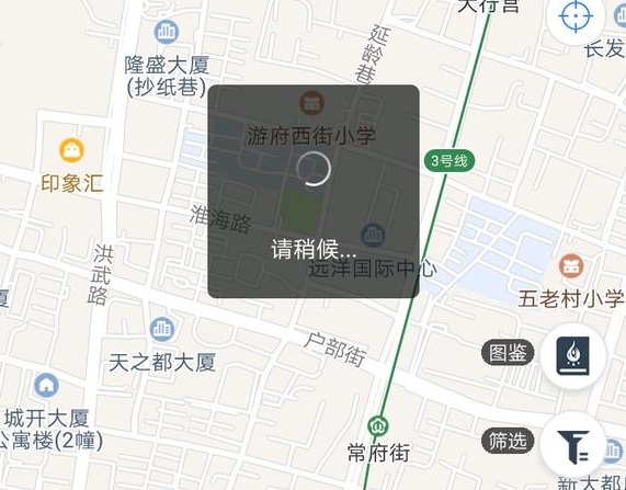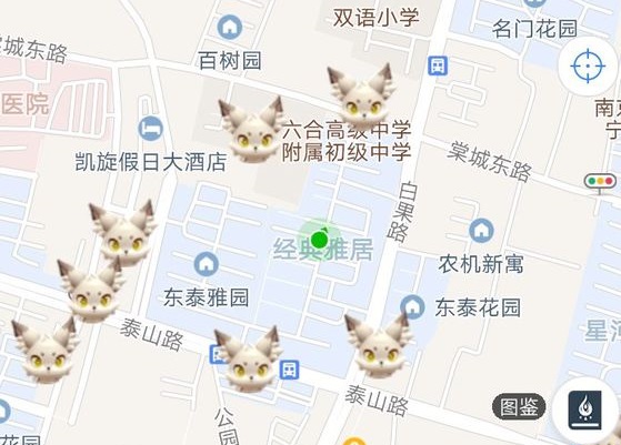 之后調(diào)整地圖大小,縮放至合適的大小,具體來說就是街道系的輪廓還在,但是更細的樓層方塊塊不會顯示出來,這樣做的目的是:地圖比例尺過大會導(dǎo)致妖怪刷的不全,可能會漏掉目標妖靈,過小則會浪費大量時間。圖二為已經(jīng)刷出來的風雪虎。
