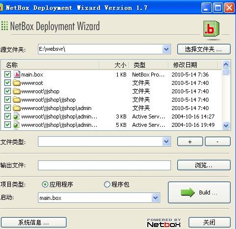 netbox可以以兩種方式運行,開發(fā)模式和發(fā)布模式。在開發(fā)模式中,所有的腳本代碼都是存放在 NetBox 所在的目錄及其子目錄中,以便于修改、調(diào)試。在最終軟件發(fā)布時,出于版權(quán)考慮、代碼安全考慮、代碼完整性考慮等,可以將全部代碼與運行環(huán)境使用 NetBox 專用的發(fā)布工具發(fā)布成為一個完全獨立執(zhí)行的發(fā)布版本,全部 NetBox 支持的腳本程序,包括主程序、asp 程序、wsc 對象,以及程序所引用的文件,包括 Include 文件、Web 應(yīng)用所必須的靜態(tài)文件等等,都可以全部被發(fā)布進(jìn)這個文件,從而達(dá)到發(fā)布整個應(yīng)用的目的。main.box是NetBox的主程序,在 main.box 中有兩個內(nèi)建對象,NetBox 和 Shell。NetBox 是基本內(nèi)建對象。主要包含了 NetBox 的基本功能,包括裝載運行庫、創(chuàng)建對象、注冊對象等等一系列常用操作。Shell 是程序的執(zhí)行界面,通過對 Shell 的操作,可以使得 NetBox 程序以不同的方式執(zhí)行,比如控制臺程序,系統(tǒng)服務(wù)程序,超文本對話框等等。