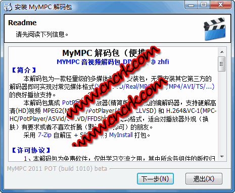 MyMPC解碼包集成 PotPlayer 播放器(精簡版)及主流的解碼器,支持硬解高清(HD)視頻MPEG2(內(nèi)置/CLVSD) 和H.264&VC-1(內(nèi)置/FFDShow)編碼格式,適合對播放器外觀(換膚)有要求或者不喜歡折騰(默認設置即可)的朋友。