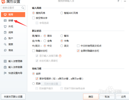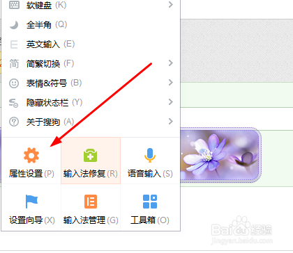 2、進去之后我們可以看到有個屬性設(shè)置,我們點擊進去,這時候我們可以大致設(shè)置下簡體,全拼等,如果需要更好的設(shè)置,請看如下步驟。