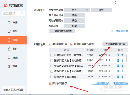 5、我們還可以針對自己感興趣的類型,勾選細(xì)胞詞庫,也會有很大的幫助。
