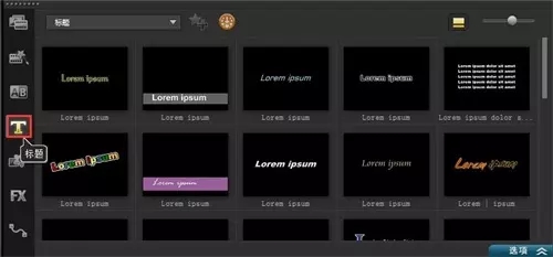 二、單擊“標(biāo)題”按鈕,切換至“標(biāo)題”選項卡,此時可在標(biāo)題庫中有很多的類型的標(biāo)題字幕,如圖1所示。