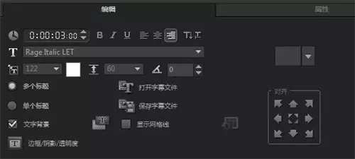 五、選擇輸入的標(biāo)題字幕,在“編輯”選項面板中,設(shè)置標(biāo)題字幕的字體類型、字體大小和文本對齊方式等屬性。
