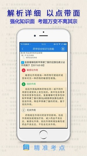精準(zhǔn)考點(diǎn)執(zhí)業(yè)藥師app是一款非常不錯(cuò)的執(zhí)業(yè)藥師考試刷題應(yīng)用軟件,精準(zhǔn)考點(diǎn)執(zhí)業(yè)藥師app利用信息科技技術(shù),整合全國(guó)有志為醫(yī)療事業(yè)發(fā)展的師資隊(duì)伍,讓考生更有效的學(xué)習(xí),牢記知識(shí)點(diǎn)。