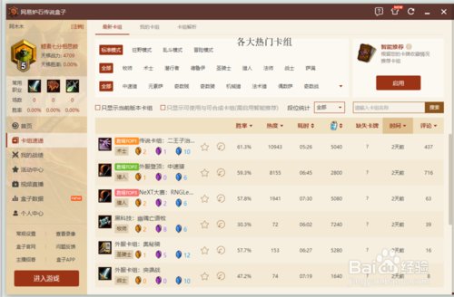 4、打開卡組可以看到別人用的比較流行比較好的勝率比較高的卡組。