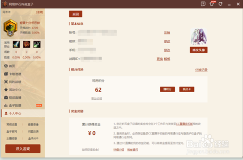 3、登錄好之后這個盒子就算綁定我們的戰(zhàn)網(wǎng)賬號了,這個時候就可以查看我們的一些賬號信息和一些卡組。