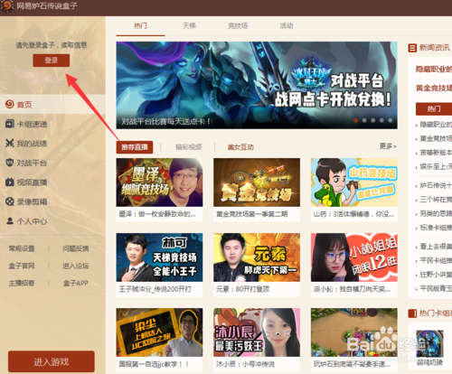 1、我們下載安裝好爐石傳說盒子之后,打開盒子,點擊主頁面的登錄。