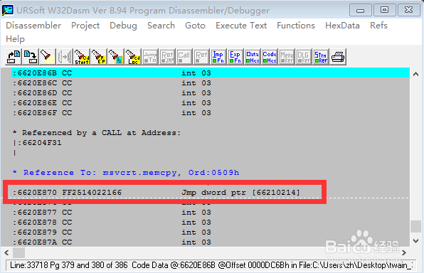 先找到要修改的代碼在文件中的偏移,記下此地址。如下圖所示