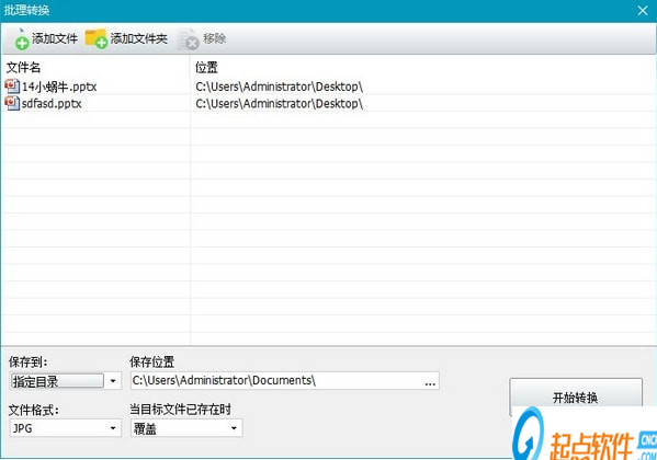 在這個批量轉(zhuǎn)換窗口里,可以添加多個PPT文件,設(shè)置好保存位置等相關(guān)選項后,點擊右下角“開始轉(zhuǎn)換”按鈕,即可以一鍵將所有的PPT文件轉(zhuǎn)換為長圖圖片了。