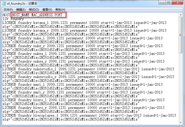 5、在crack中找到xf_foundry.lic,右鍵以記事本方式打開(kāi),如圖所示,我們需要替換計(jì)算機(jī)名和物理地址