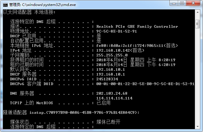 6、物理地址查看方法是在開(kāi)始菜單里面點(diǎn)擊“運(yùn)行”輸入“cmd”,然后在彈出窗口輸入“ipconfig/all”點(diǎn)擊回車(chē)就出來(lái)了