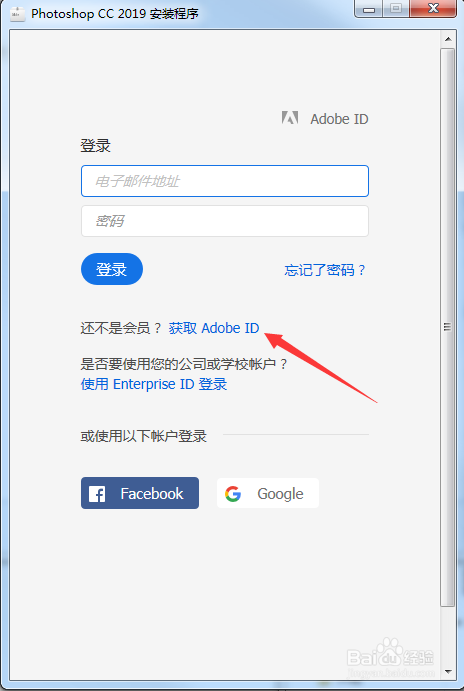 2、如果沒有賬號(hào)的,注冊(cè)獲取一個(gè)Adobe ID賬號(hào)即可。