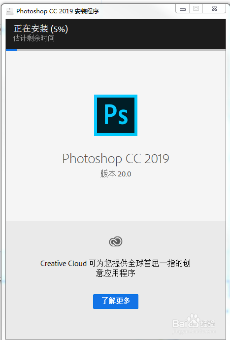 4、我們就會(huì)看到正在安裝PS軟件了,等待安裝完成就可以