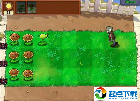 這一關(guān)僵尸出的快,但沉住氣,先造4個(gè)向日葵再出豌豆,后面一邊補(bǔ)向日葵,一邊放豌豆即可。