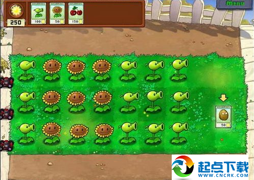 這一關(guān)沒什么好說的,相當(dāng)于教程關(guān)。點(diǎn)太陽,擺豌豆。