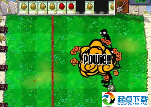 讓僵尸先過來,上面的石頭塊攢滿的時(shí)候,或者僵尸到紅線跟前了,扔吧。紅的不要亂扔,那可以炸一片。跟打保齡球似的...