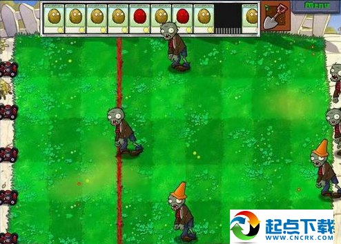 從這一關(guān)起,就正式開始了。不像前面教程關(guān),只有1路或3路,而且僵尸也出的慢。