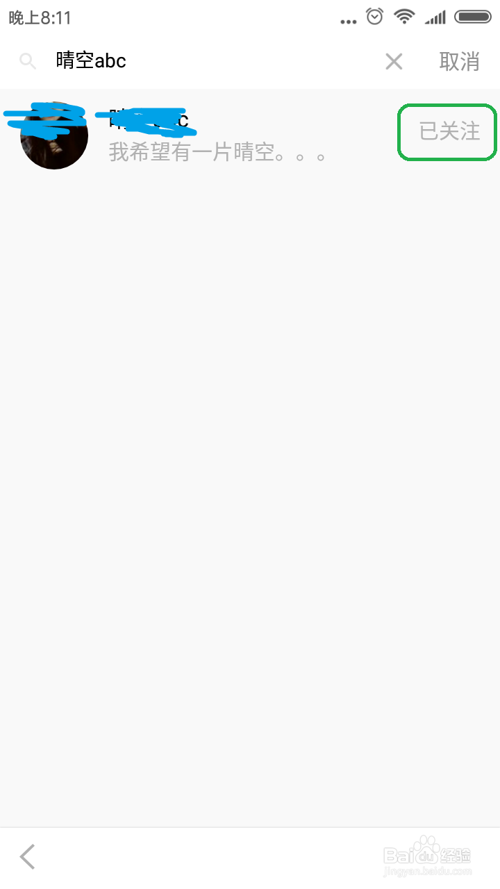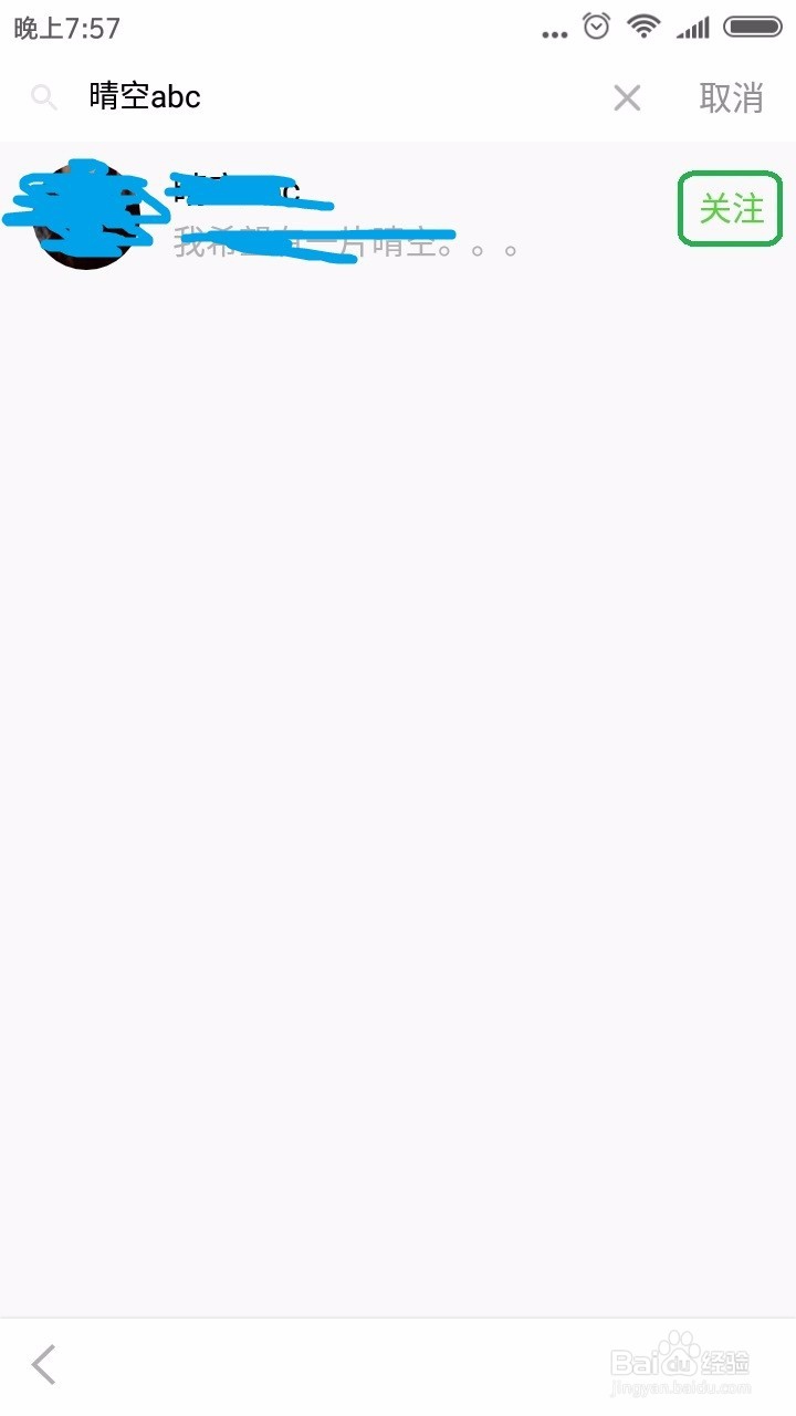 在搜索框中輸入用戶名, 比如”晴空abc”