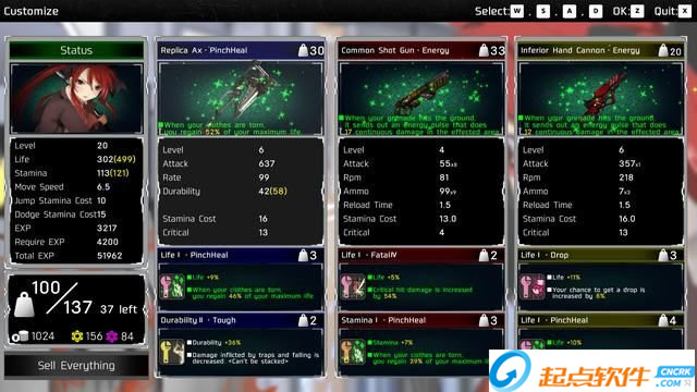 每種武器都可以提升等級,在武器插槽上插入強(qiáng)力配件可以增加武器的屬性。