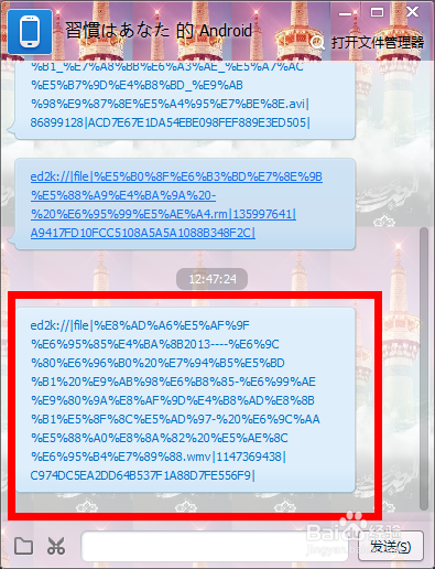 打開(kāi)電腦端的qq,會(huì)自動(dòng)彈出手機(jī)qq傳來(lái)的地址,鼠標(biāo)點(diǎn)擊一個(gè),會(huì)自動(dòng)彈出迅雷提示下載