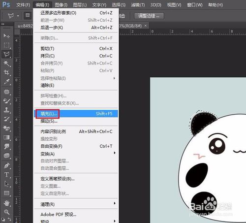 3、在菜單欄“編輯”中選擇“填充”選項。