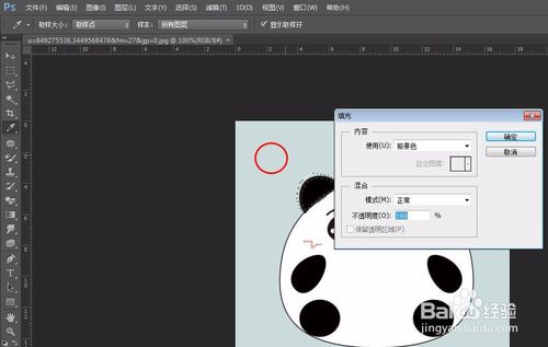4、把光標放在要填充的顏色上左鍵單擊一下,這時顏色前景色變?yōu)槲覀儎倓偸叭〉念伾?,所以在“使用”這里選擇“前景色”,單擊“確定”按鈕。