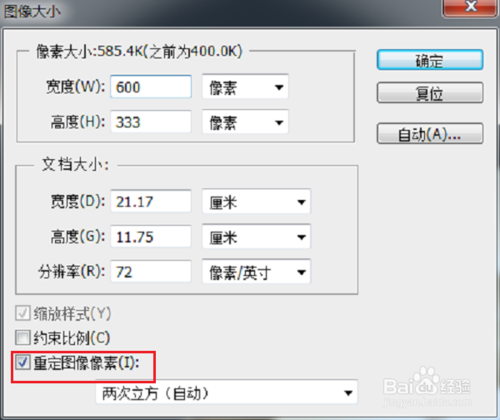 5、我們?nèi)∠s放樣式,約束比例的勾選,重新設(shè)置寬高,如下圖所示: