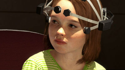 在一個(gè)滿是監(jiān)控錄像的房間內(nèi),年幼的朱迪獨(dú)自在地上玩玩具。一個(gè)穿白大褂的黑人走了過來說:“啊,原來你在這兒啊,今天過的如何朱迪,還不錯(cuò)吧。我知道你討厭在玩的時(shí)候打擾你,不過時(shí)間到了,小甜心”朱迪站了起來,跟著這個(gè)黑 人走?!昂冒桑紊戎覀儭焙?人繼續(xù)說道。朱迪走出了房門,到了一個(gè)走廊上。走廊上到處是穿白大褂的大人們?cè)谶吷祥e聊。之后朱迪和黑 人走進(jìn)了一間房間,里面有個(gè)戴眼鏡的人對(duì)著朱迪說“嗨,朱迪,最近過的如何”顯然這個(gè)人就是黑 人口中的奈森?!拔液芎谩敝斓侠淅涞拇鸬馈H缓笞搅艘巫由?。黑 人拿起桌子上的儀器對(duì)著朱迪說:“OK,讓我們帶上這個(gè),記得嗎就像帶皇冠一樣。”說著把儀器戴在了朱迪頭上。
