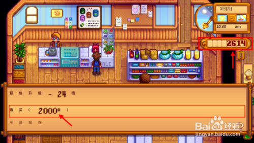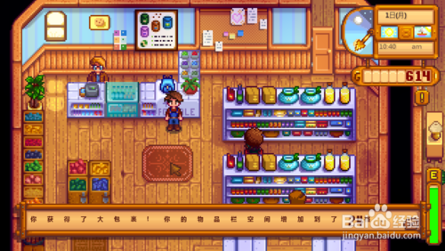 4、點(diǎn)擊左側(cè)收銀臺(tái)購買種子和其他雜貨,點(diǎn)擊右側(cè)背包圖案擴(kuò)容。