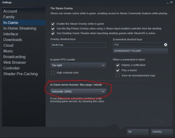 在steam客戶端設(shè)置中將服務(wù)器ping從auto更改為3000應(yīng)該會(huì)顯示所有服務(wù)器。