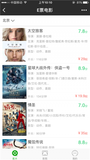 E票電影app是一個(gè)以線上票務(wù)平臺(tái)為核心,著重于商影融合,專注線上發(fā)行推廣、以實(shí)現(xiàn)電影和其他行業(yè)線上交互及用戶共享的平臺(tái)。電影新玩法,娛樂1+1。在線購票、低價(jià)優(yōu)惠、團(tuán)體采購電影票盡在E票電影app。