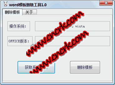 Word模板刪除工具 V1.0 簡體中文綠色免費版 Word模板刪除工具使用方法很簡單,首先點擊獲取系統(tǒng)信息,接著點擊刪除模板按鈕就可以了,暫時只支持xp系統(tǒng),以后會加入對其他系統(tǒng)的支持。使用的時候要注意先關閉正在打開的word文檔,以免刪除失敗。