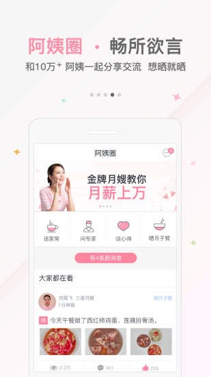 月嫂姐妹們隨時隨地可以在圈子里聊~護理心得體會,秀秀月子餐,曬和萌娃合照。在護理寶寶和寶媽過程中遇到問題時,還可以隨時向圈子中的專家提問,母嬰護理專家將為您答疑解惑,分享最科學育兒知識,快速提升姐們的各項護理技能。