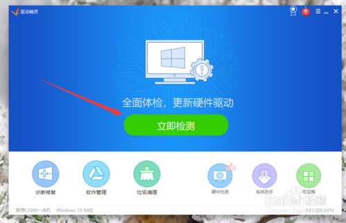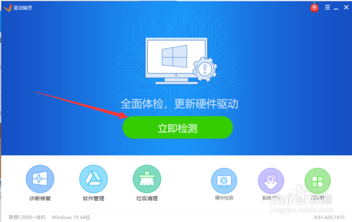 1、首先使用軟件對(duì)電腦上的硬件驅(qū)動(dòng)問(wèn)題問(wèn)題進(jìn)行檢查,看看是否缺少對(duì)應(yīng)的硬件驅(qū)動(dòng),如圖所示,點(diǎn)擊一下立即檢查