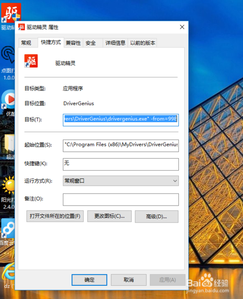 1、首先我們用360軟件管家是直接卸載不了的,這里就要在桌面找到驅(qū)動(dòng)精靈圖標(biāo),右鍵屬性,在“快捷方式”下面的“起始位置”會(huì)顯示驅(qū)動(dòng)精靈存儲(chǔ)的位置。